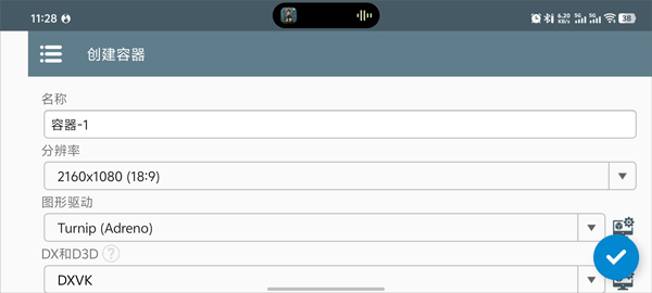 2、在创建界面中根据手机性能选择合适的分辨率与显存大小(配置较低的设备建议选择较小的参数,以保证流畅度);
