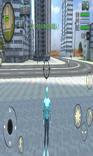 4、右下方的爆炸键位,瞄准建筑物可以飞檐走壁,瞄准敌人可以进行攻击。