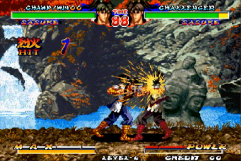 搭载独特的“忍者COMBO”连招机制,通过特定指令组合可触发多样连击,部分角色还设有隐藏技能,输入方式颇具挑战。该系统的复杂程度在同期格斗游戏中极为突出,极具研究与挖掘价值。