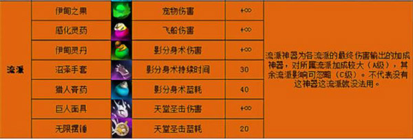 增加所有英雄与点击伤害。对于所有流派是通用地强大,尤其是天堂流、影分身流与宠物流。
