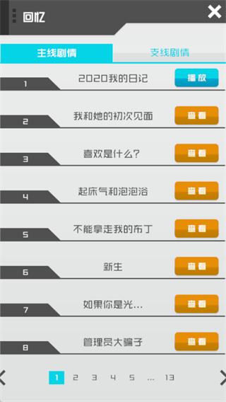 【回忆】部分主要展示解锁的剧情内容,根据完成任务数与好感等级开启。