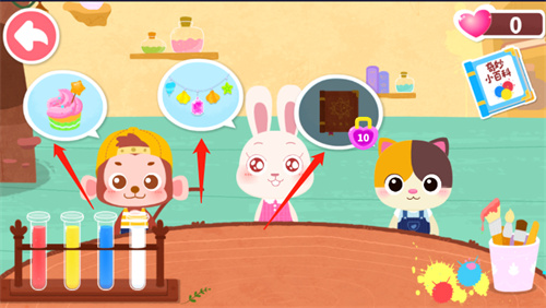 奇妙手工调色是个好玩的趣味小游戏,通过体验调色,涂色等多种智能互动模式,带宝宝们认识颜色,激发孩子们对美的欣赏,为以后对学习绘画打下良好的基础。整体游戏采用卡通画风,在游戏中你将会认识到不同的色彩,通过不同的组合来培养孩子们的动手能力和创造能力。配置颜色小精灵增加孩子们的学习兴趣,根据语音提示捕捉对应的小精灵,可以让孩子们更高效的完成任务。