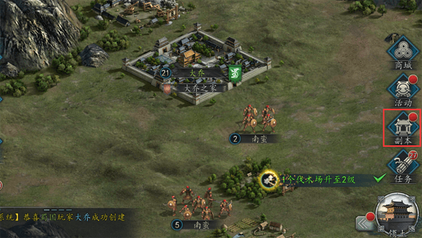 主公们可以通过主界面右侧的“副本”按钮,进入副本挑战界面。