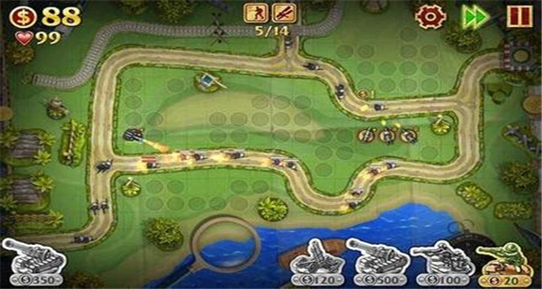 喷火小分队走下方的军衔线,可以减速;一星大兵过渡用,后期位置紧张要造别的,果断卖之;部分多线出兵的道路,一些位置两边都可以打到的要好好利用(塔防老手应该不用我提醒吧),加防的军衔线到目前为止没啥大用,后几关不确定是否有强攻类敌人出现。