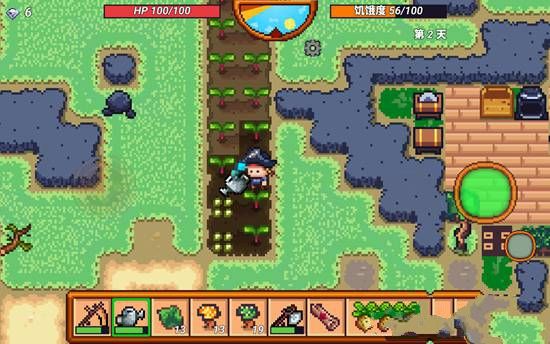 种好东西后就等着收获了,游戏中我们要保持自己的饥饿值,经常会去野外到处跑寻找食物,有时候也需要寻找纤维来制作绳子,有了自己的土地,那么这些东西就不用跑那么远去寻找了,自己地里就可以自给自足了。