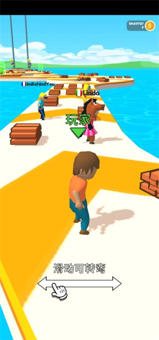 2、在游戏期间玩家需要不断的去捡木头,然后超近道塔桥来超越你的对手。