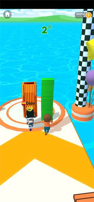 1、收集沿途的地板,搭建桥梁跨越水面,制造捷径到达终点!