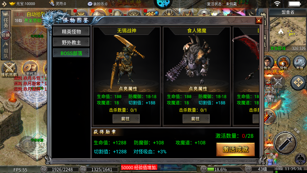 本服野外BOSS爆率于BOSS部落爆率相同且容易击杀,未付费用户推荐守好各大地图的野外BOSS也可获得高阶装备快速加入战场。