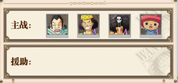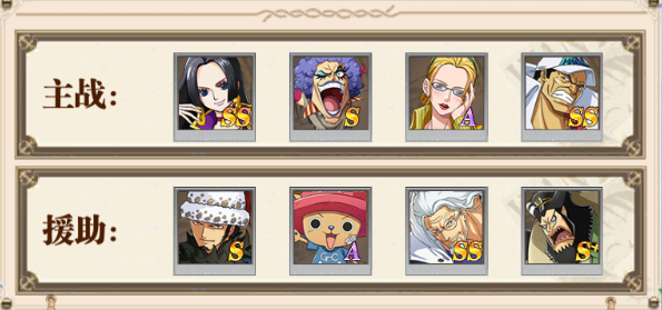 斯潘达姆作为1号位,利用其强大的技能进行牺牲式输出;2号位索隆提供强力攻击支援;3号位克洛增强队伍的控制能力,4号位巴基为全队提供爆发与减速效果。这套阵容非常适合新手玩家,伙伴获取和觉醒容易,突破后爆发力极强,助你快速提升实力。
