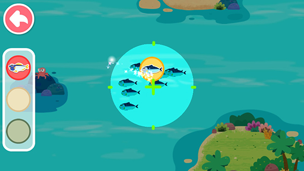 宝宝和奇奇捕到好多小鱼啊~这些不同种类的鱼,宝宝全都认识吗?点一点小鱼,宝宝能够听到小鱼的名称哦:金鱼、孔雀鱼、小丑鱼......
