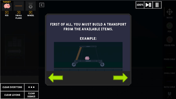 3、玩家通过建造关卡对应的工具完成通关;