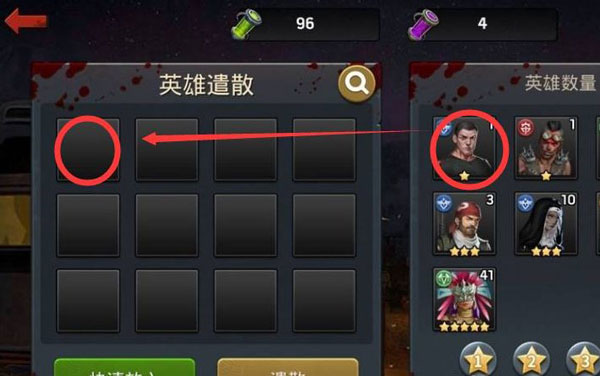 3、在遣散界面下可以点击右侧的英雄放入遣散列表内。