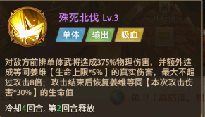 相信姜维这个武将大多数人都还是不太了解吧。大部分肉都是有一个镇守的效果,都可以适用反套装的,姜维的也是一样,但是姜维三技能是带有吸血效果的,不仅仅肉还能回血伤害还高是什么概念,简直打不死啊,带上反伤套装还给敌方再次带来伤害,可以说姜维是个半肉办输出,而且已方每次暴击都可以给已方阵容增加6%的伤害,如果带上神关那就是一刀一个小朋友了。