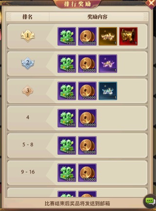 参与了对战的玩家可以根据排名积分最终排名获得排名奖励(玩家要多积极参与校场提升排名尽量进前128名参赛多拿奖励)。