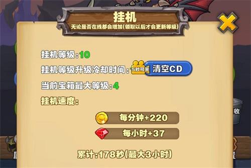 1、左边有个挂机,要把挂机等级升上去才会提高宝箱等级上限,初始是1级。