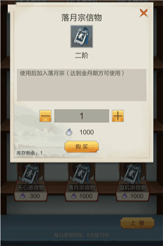 1)去坊市看看有没有刷出落月宗的门派令,刷出的话,一定要买了,威望用灵石买。坊市0点和12点各刷新一次。