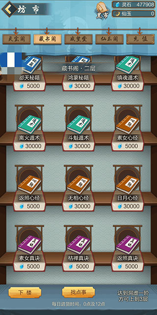 ③灵石留下钓鱼的和买道书的,剩下的全部买技能书,3万以下的全部买了,3万的先买真诀,再买秘籍,10万的只买真诀。若是巨氪,可以买灵玉阁的仙玉真诀书,快速堆防御飞升。