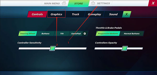 点右上角三个点的标志之后,点击一第个钥匙的标志,还有屏幕下方红色感叹号点一下会变白(那个是手刹要关闭)就可以按油门了