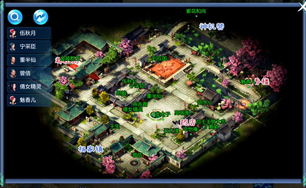 组队后却发现队友不在身边?点击屏幕右上角打开当前场景地图,即可查看队友和怪物分别在何处。左上角的放大镜图标是查询按钮,用它可以快速寻找重要的NPC。点击切换按钮则会切换到世界大地图,在非战斗情况下,可以快速传送到指定场景地图。