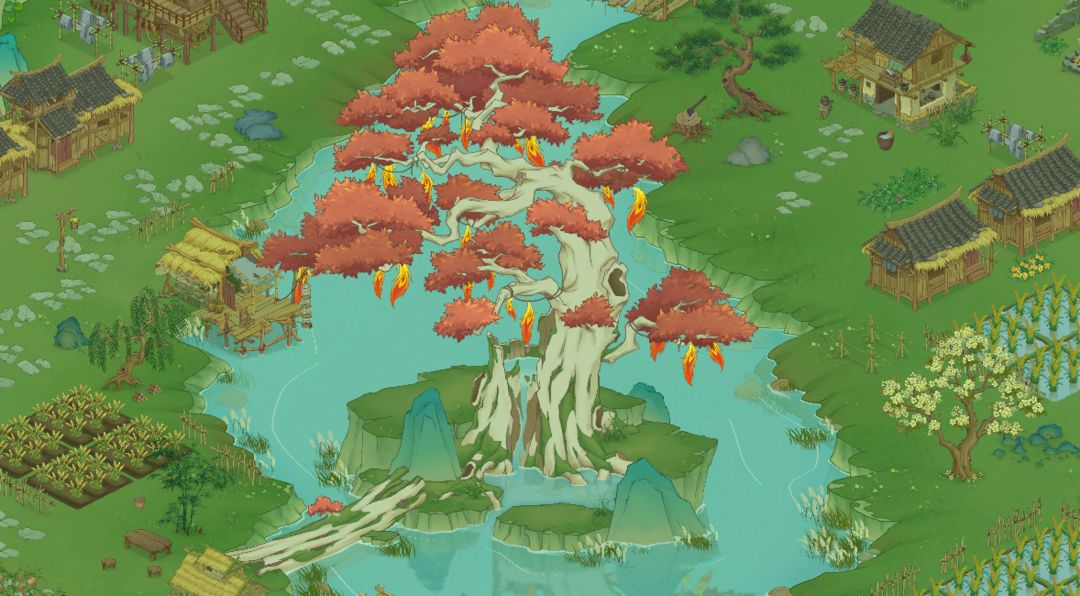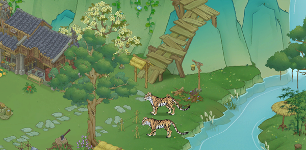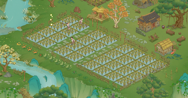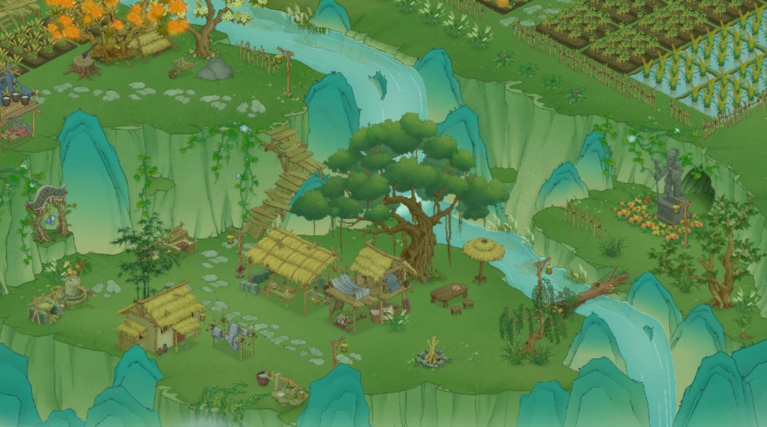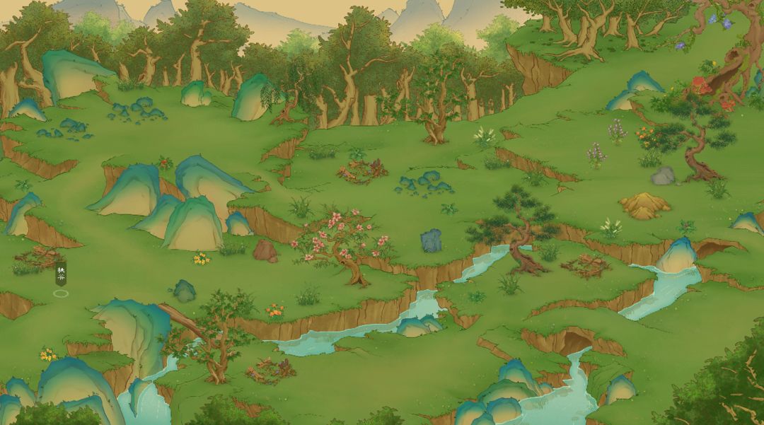 《桃源记2》场景主要分为桃源山谷主场景大地图、森林地图以及陶先生家地图,整体为国画风格,展现出中国传统艺术瑰宝的美丽。