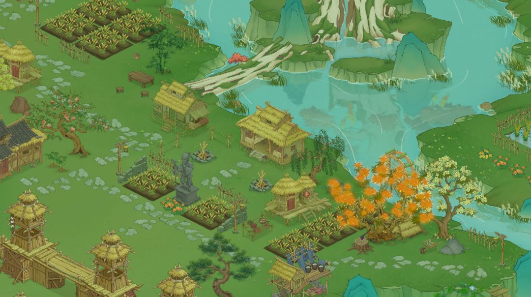 初始区域只能满足初期的发展需求,等谷主们完成新手引导,修建山路后,就可以来到小村。