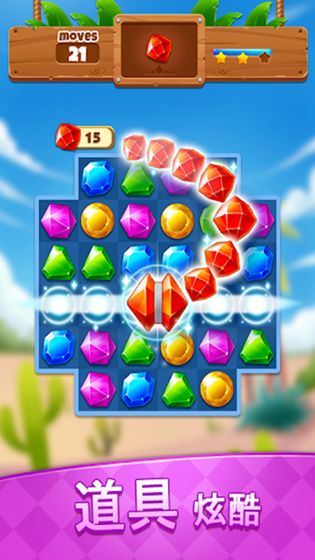 消除关卡中所有颜色相同的宝石,并有大量的道具供您选择和使用。