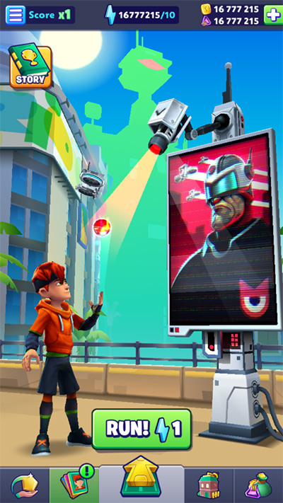 通过一次又一次的奔跑来提高你的分数,每一步都不会浪费,甚至在离线时!随着得分的增长,你将可以解锁新的道具和玩法更丰富的地区!