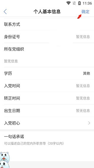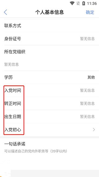 3、在下方填写入党时间、转正时间、出生日期、入党初心;