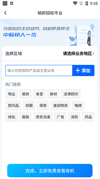 1、下载安装后打开软件,注册后登录选择经营的产品或者主营的业务以及区域。