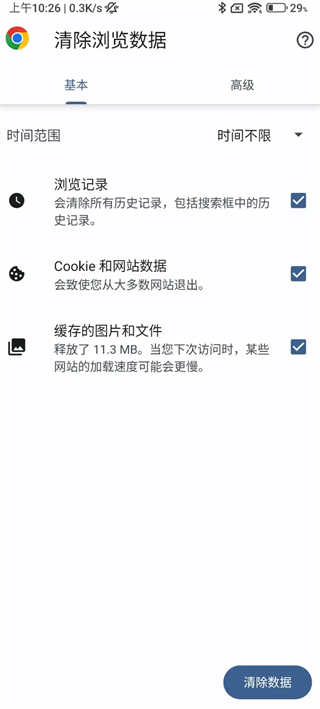 *删除浏览数据:从 Chrome 中删除浏览记录、Cookie 和其他数据。