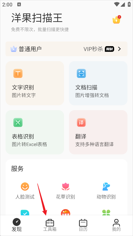 1、打开洋果扫描王,在首页界面点击“更多”功能选项。